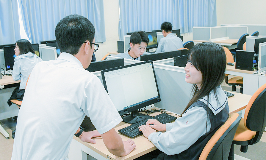 授業では、主に「Excel」や「Word」などのアプリケーションソフトの活用方法や帳簿処理、財務諸表の作成から分析に至るまでの手続きについての理解を深めながら、各種検定にチャレンジします。また、授業以外の時間も活用して、生徒の皆さんのチャレンジを教員もバックアップしています。資格を取得することは、就職だけでなく、大学進学(商業系)にも有利です。