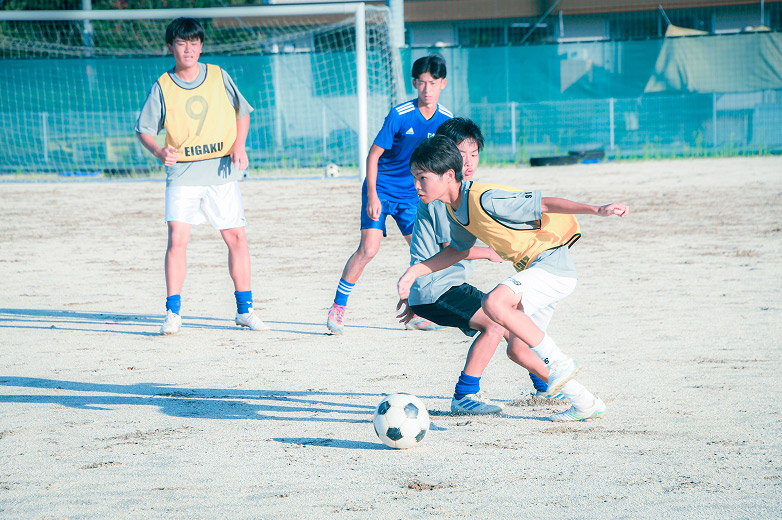 サッカー部は、県大会ベスト4を目標に掲げ、限られた練習時間の中でも一人ひとりが高い集中力を持って日々の活動に取り組んでいます。学年の垣根を越えて仲が良く、チーム全体に明るく前向きな雰囲気が広がっている楽しい部活動です。