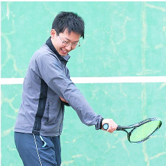 男子テニス部は、学年に関わらず部員同士が良い関係を築いている部活です。大会では一回でも多く勝ち上がるために、日々練習を頑張っています。中国総体団体出場という目標に向かって、一緒に心身を鍛えましょう。