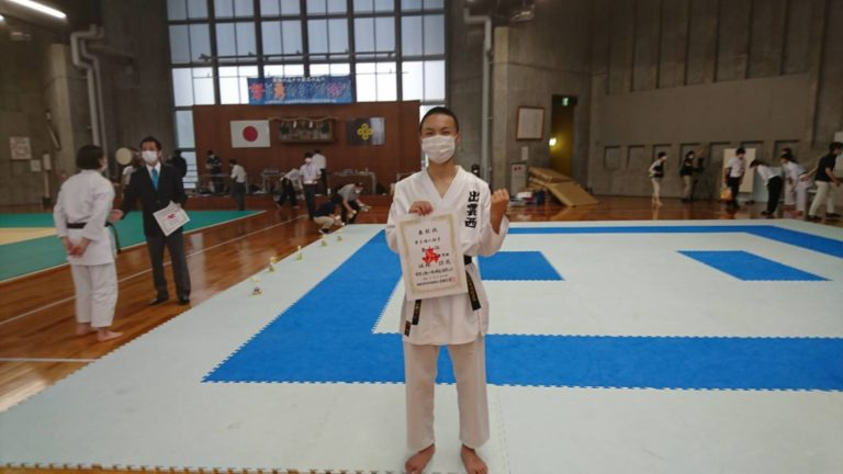 本校生徒の坂根諒哉くん(2年)が男子個人組手の部で見事第1位を獲得しました!
