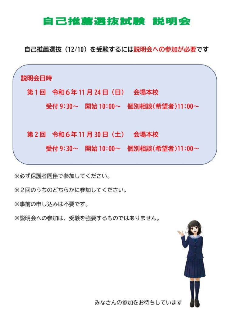 自己推薦選抜試験説明会について