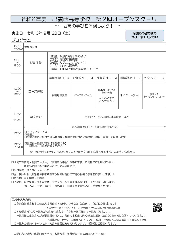【第2回オープンスクールへ参加される中学生の皆様へ】