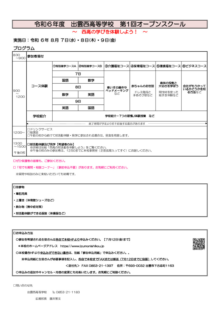 オープンスクールの参加申し込みをしていただきありがとうございます。
