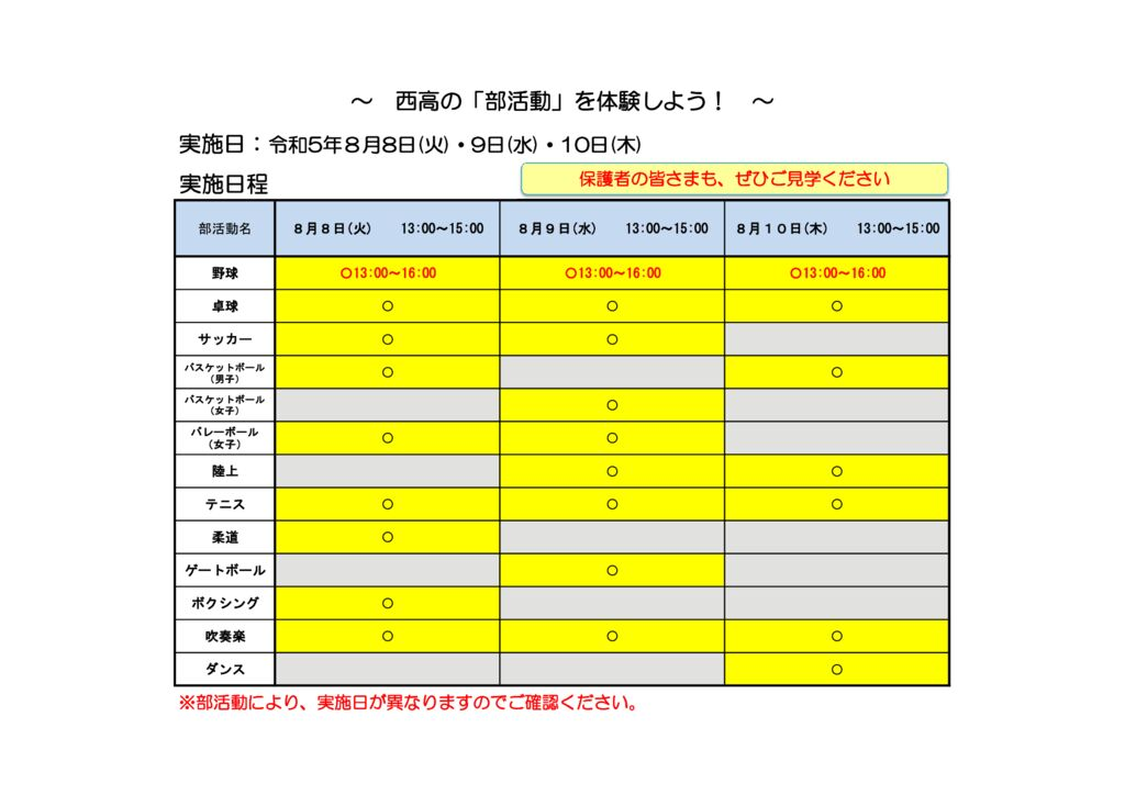 8月10日(木)のオープンスクールについて