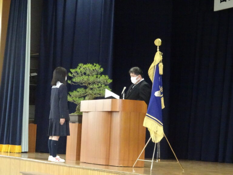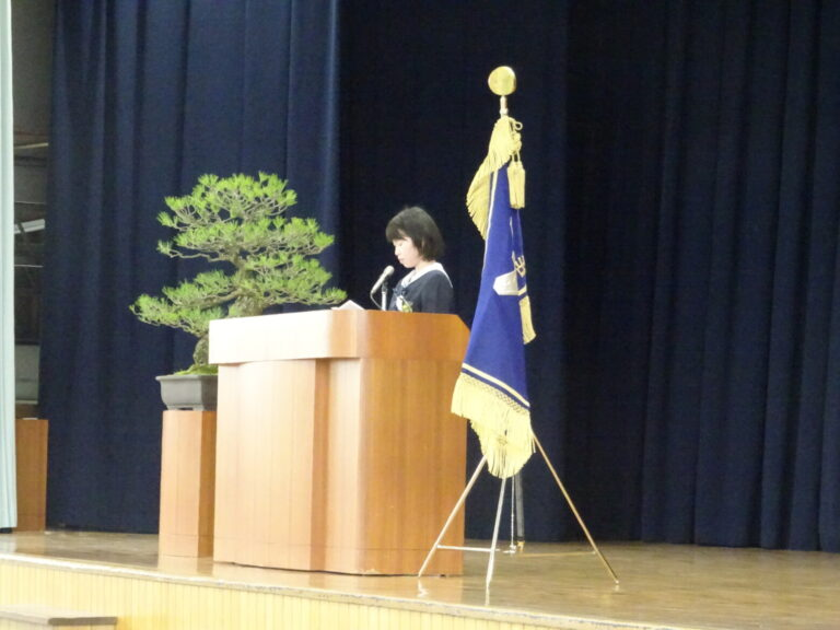 学校長の式辞では「主体性をもって行動してほしい」と熱いメッセージをいただきました。